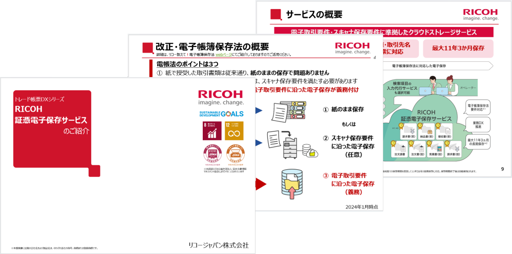 <サービス紹介資料ダウンロード> トレード帳票DXシリーズRICOH 証憑電子保存サービス